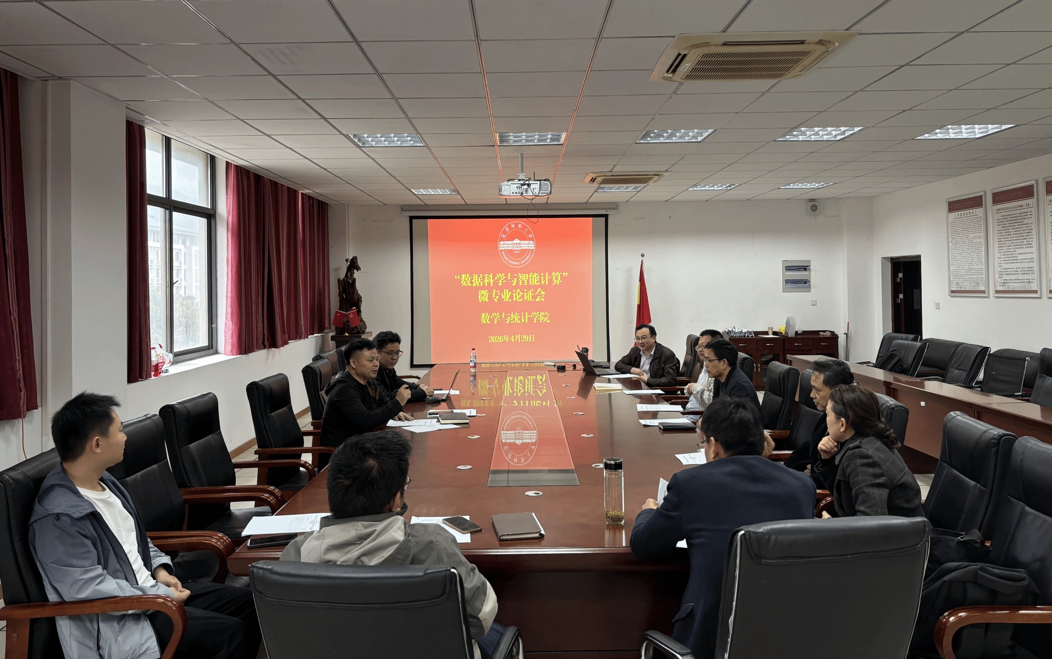 4月29日,数学与统计学院召开“数据科学与智能计算”微专业论证会。学院副院长陈文兵、安徽力瀚科技有限公司教育行业负责人、信息与计算科学系及统计系系主任、教研室主任和骨干教师参加会议。会议由陈文兵主持。
