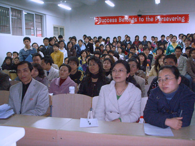 王东风教授首先简单回顾了自己在母校的学习和工作经历,介绍了自己的奋斗历程,并勉励同学们要努力学习,不断追求进步,争取学有所成;接着,王教授通过对两个英语翻译案例的分析,切入了此次讲座的主题。他从被动变译概念的解释、被动变译理据的缺席和被动变译的文学性缺失等三个方面对“被动语态变译的功能亏损”进行了详尽的阐释,和与会教师及同学们一起探索了这一学术前沿课题。随后,王教授还就老师和同学们提出的相关的问题进行了认真解答,并与大家分享了自己在学术研究领域的一些宝贵经验。他说,同学们在做学问的时,不仅要掌握扎实的专业知识和技能,更要注意其他人文知识的积累,特别是英语语言学、西方文论知识和相邻专业理论的深入领会,用辩正的思维去思考与研究,进而建立属于自己的理论体系和成果。王教授的讲座深入浅出,语言诙谐幽默,并结合许多简单的例子,使同学们轻松地对翻译的前沿知识有了一定的了解。讲座在一片热烈的掌声中结束。