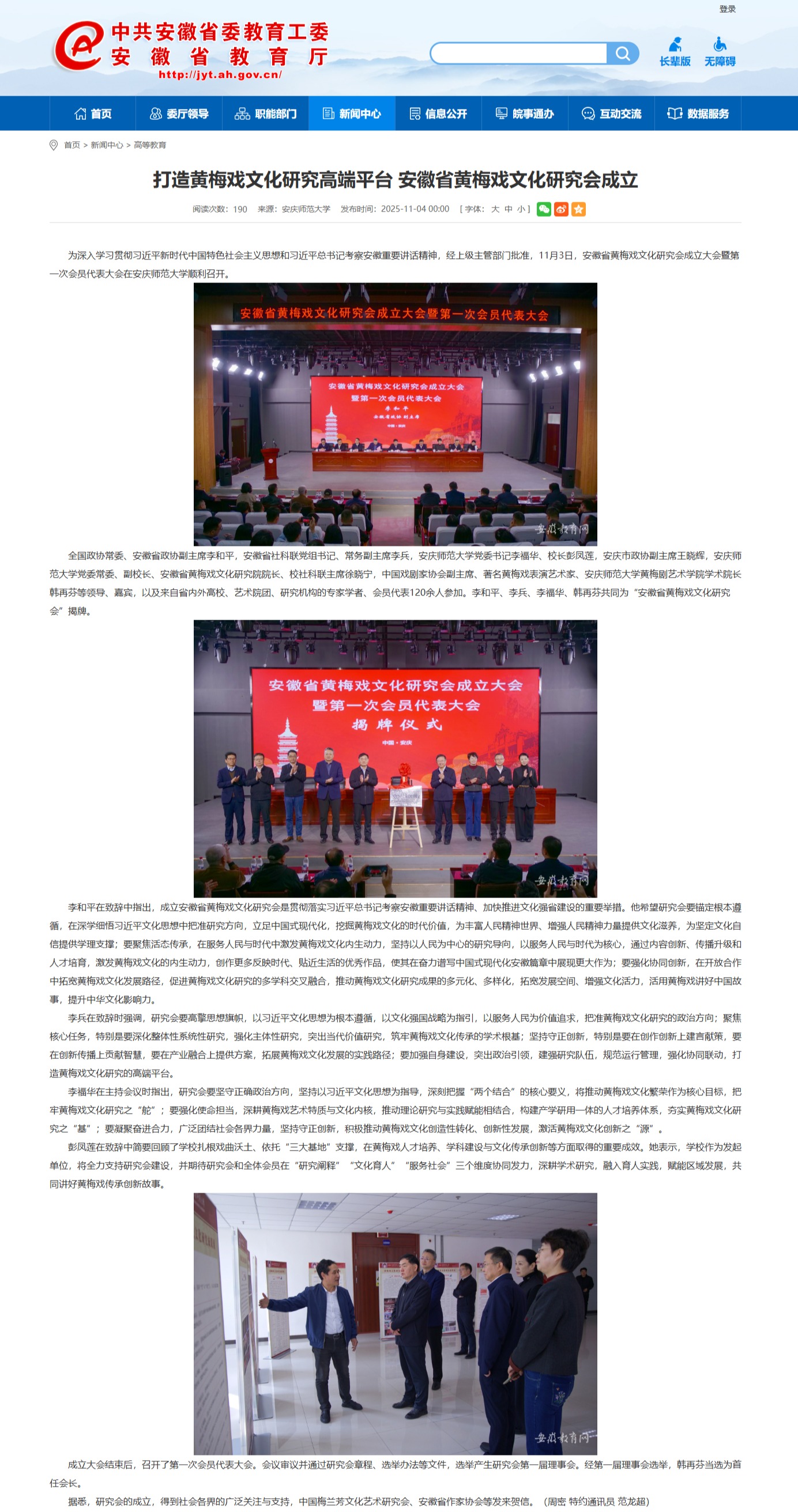 【安徽教育网】打造黄梅戏文化研究高端平台 安徽省黄梅戏文化研究会成立https://jyt.ah.gov.cn/xwzx/gdjy/40771462.html