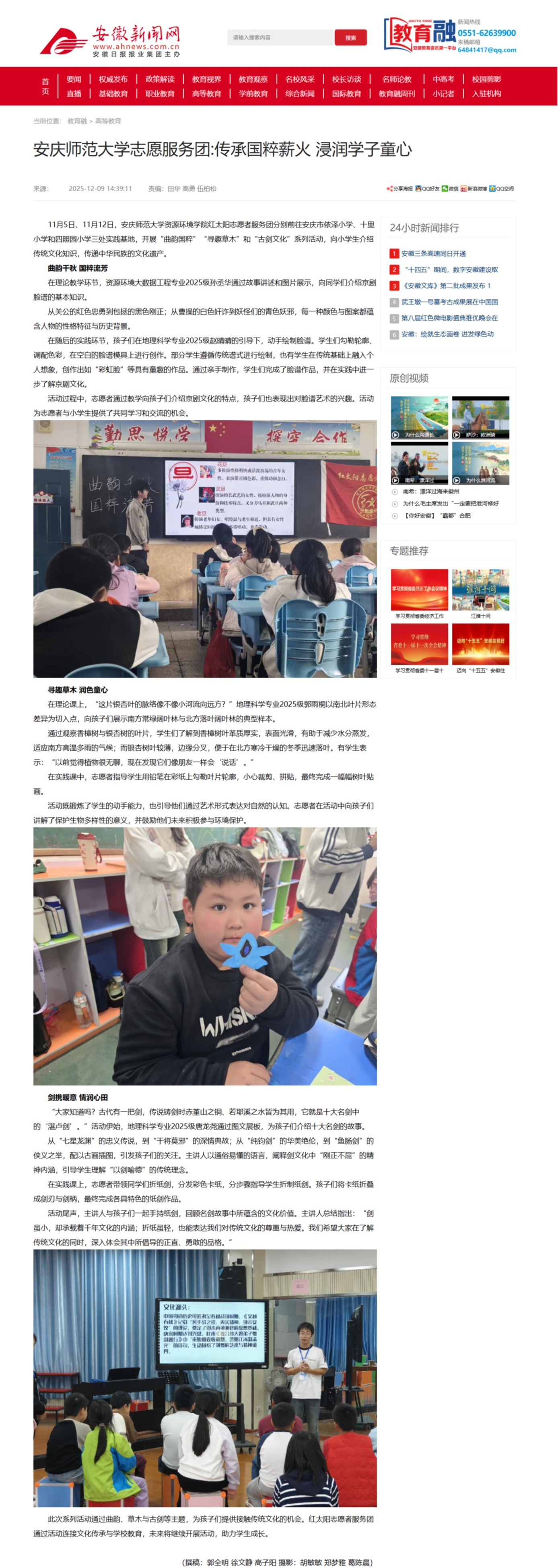 【安徽新闻网】安庆师范大学志愿服务团:传承国粹薪火 浸润学子童心http://xxt.ahnews.com.cn/news/2025/12/09/c_43257.htm