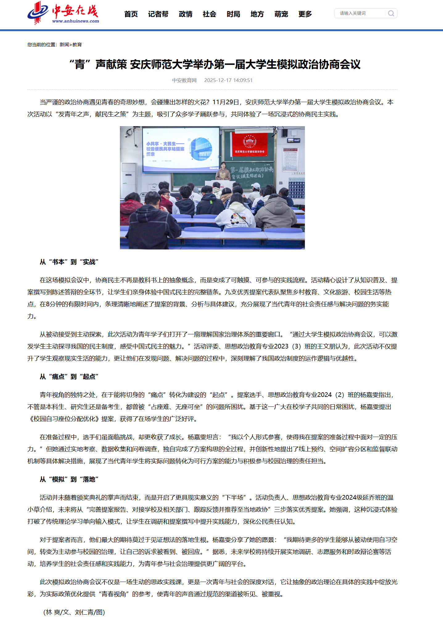【中安教育网】“青”声献策 安庆师范大学举办第一届大学生模拟政治协商会议http://api.app.anhuinews.com/pc/content/8980059.html