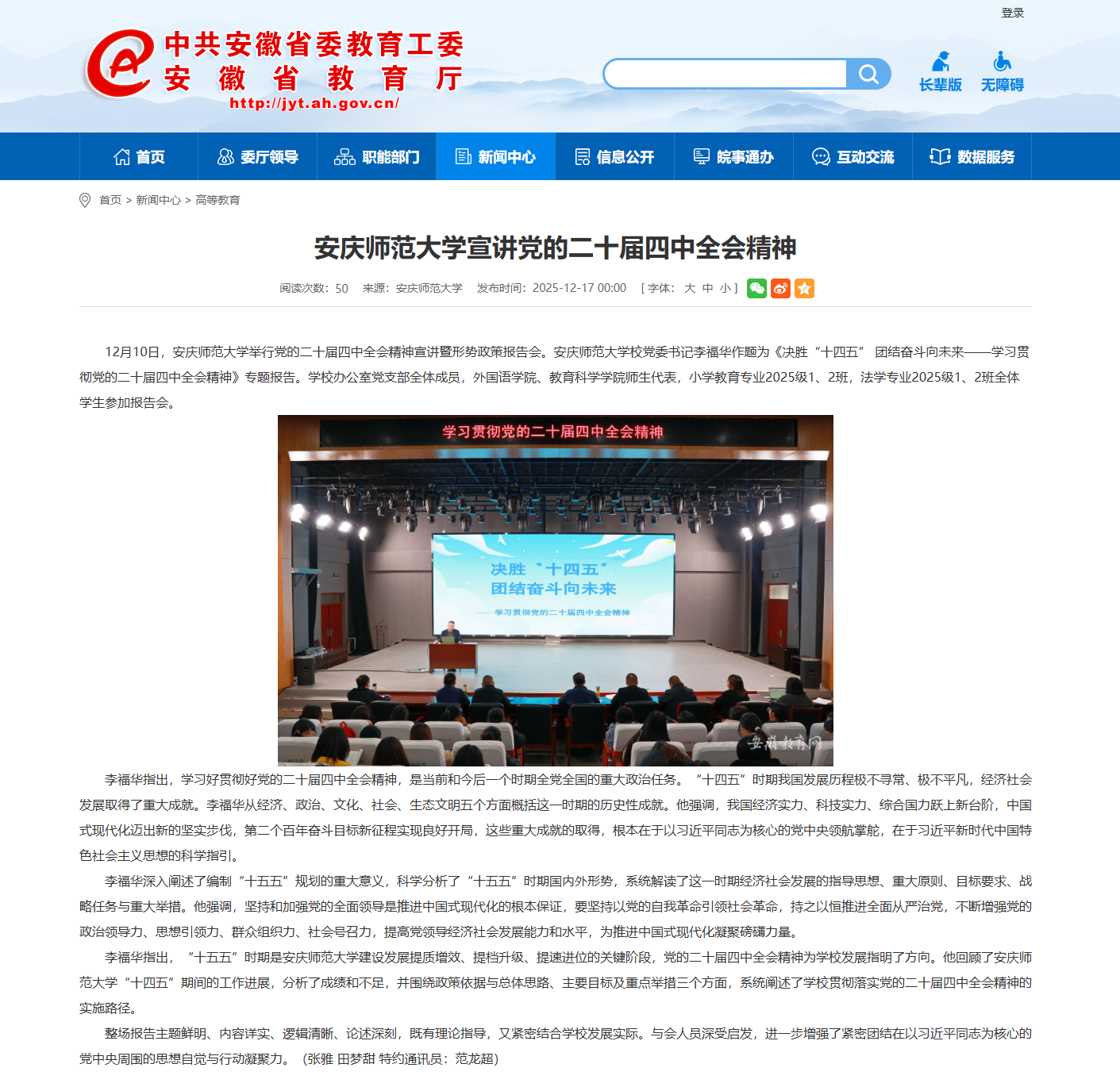 【安徽教育网】安庆师范大学宣讲党的二十届四中全会精神https://jyt.ah.gov.cn/xwzx/gdjy/40776794.html