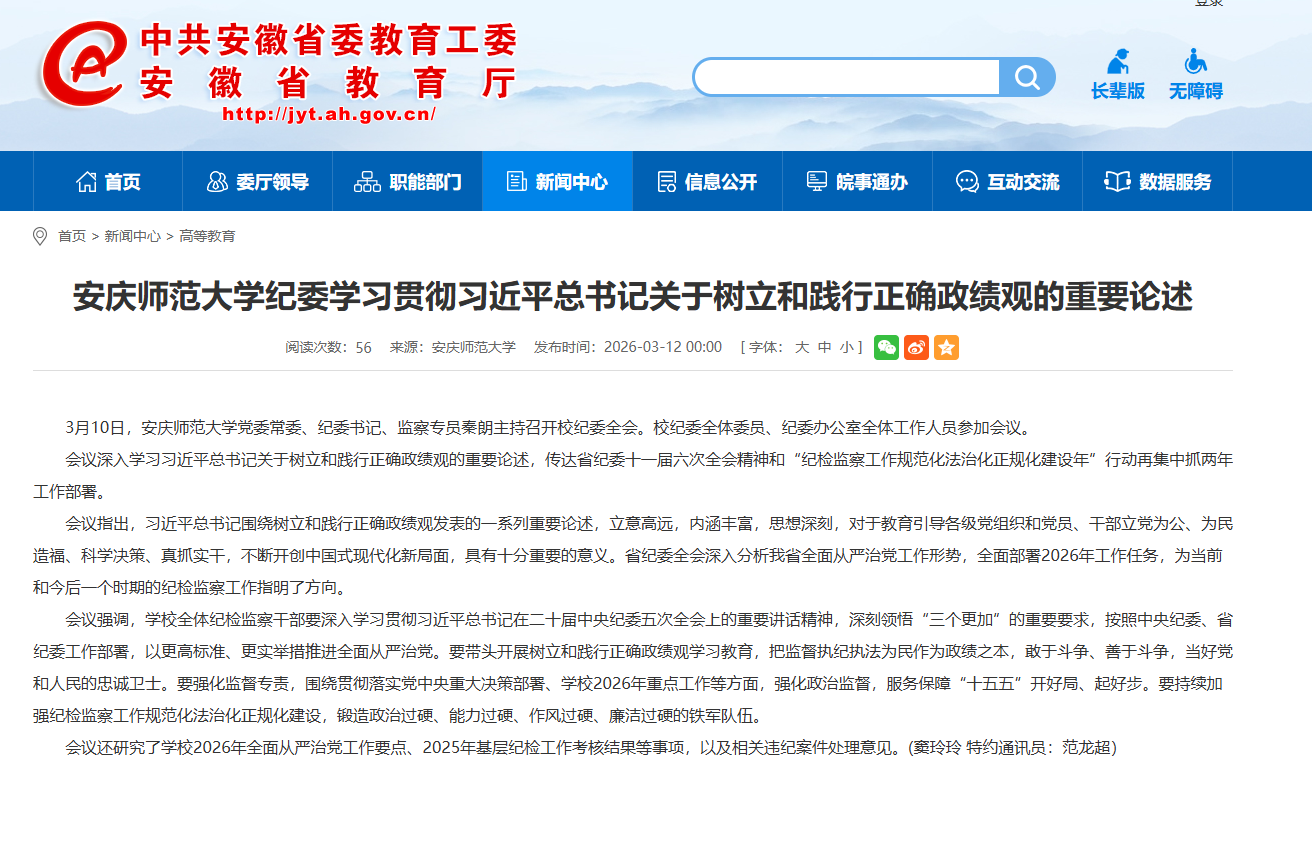 来源:【安徽教育网】安庆师范大学纪委学习贯彻习近平总书记关于树立和践行正确政绩观的重要论述https://jyt.ah.gov.cn/xwzx/gdjy/40783826.html