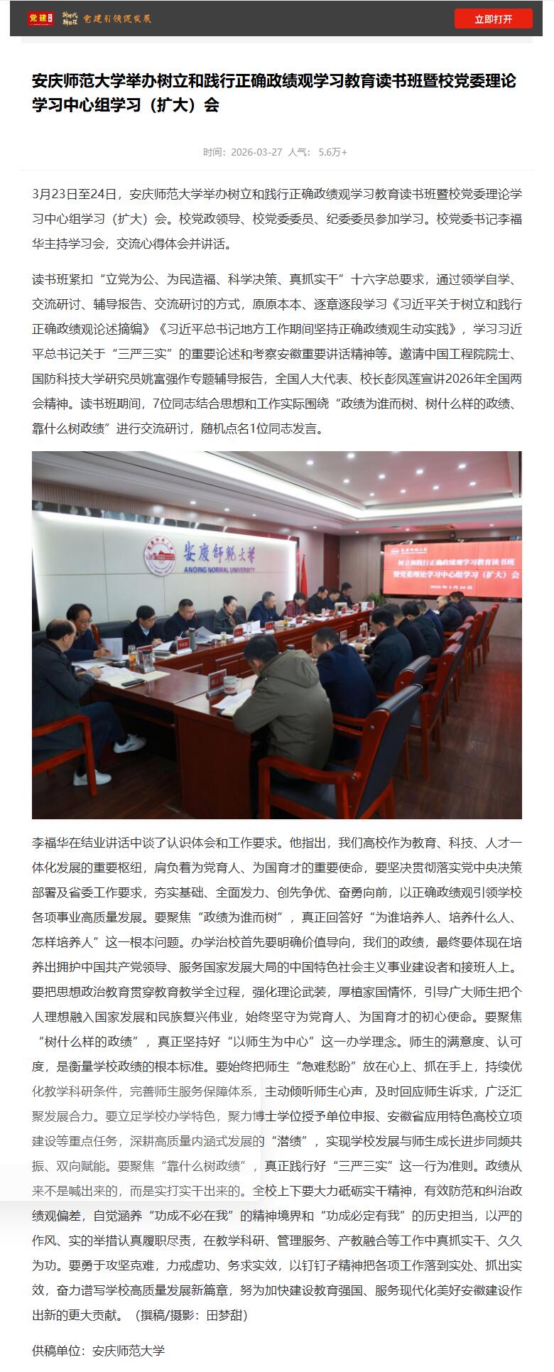 来源:【党建头条】安庆师范大学举办树立和践行正确政绩观学习教育读书班暨校党委理论学习中心组学习(扩大)会https://www.djttw.com/m/view.php?aid=1062518