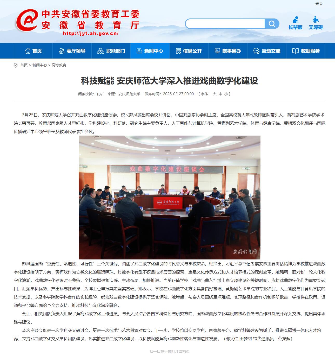安徽教育网:科技赋能 安庆师范大学深入推进戏曲数字化建设