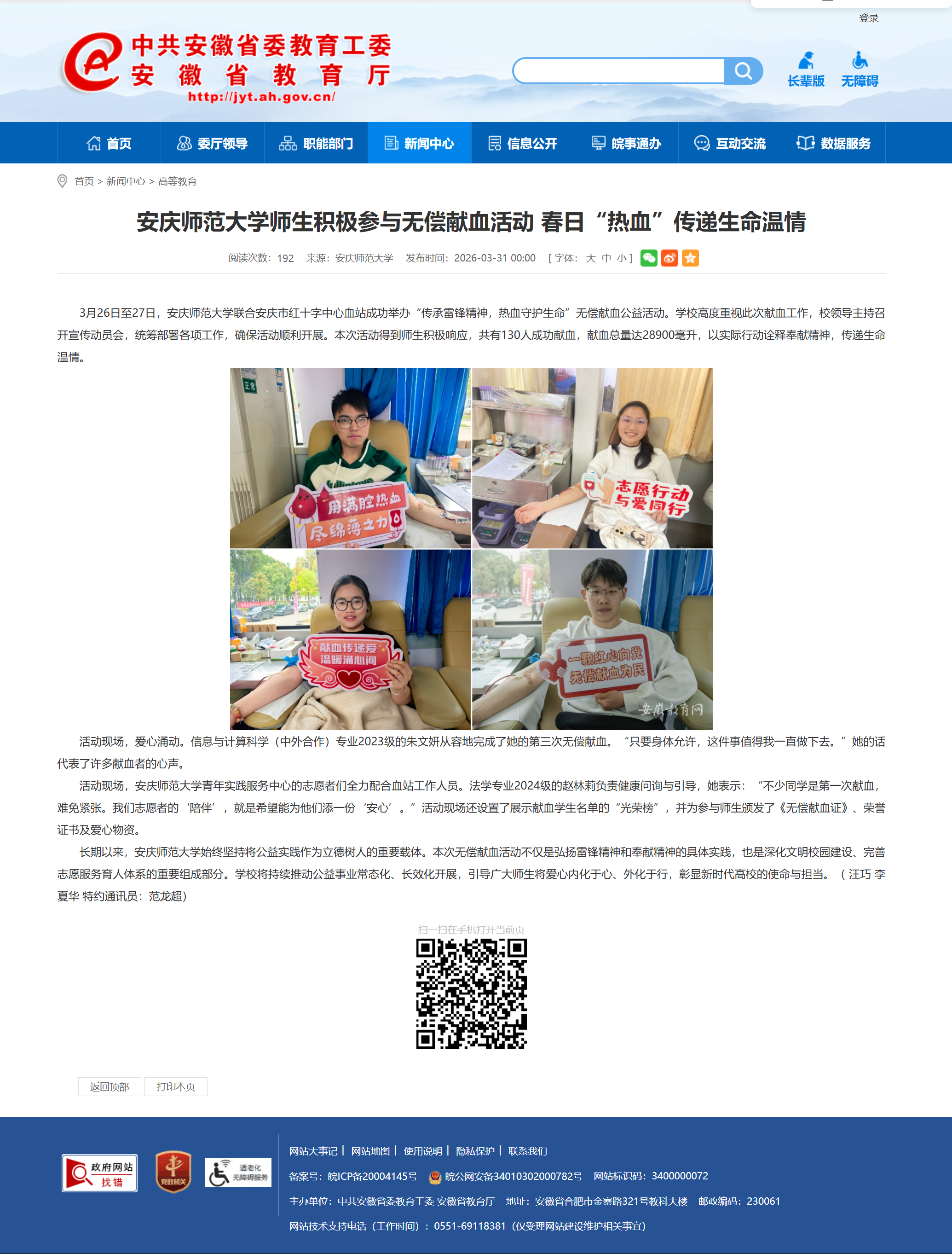 来源:【安徽教育网】安庆师范大学师生积极参与无偿献血活动 春日“热血”传递生命温情https://jyt.ah.gov.cn/xwzx/gdjy/40785885.html