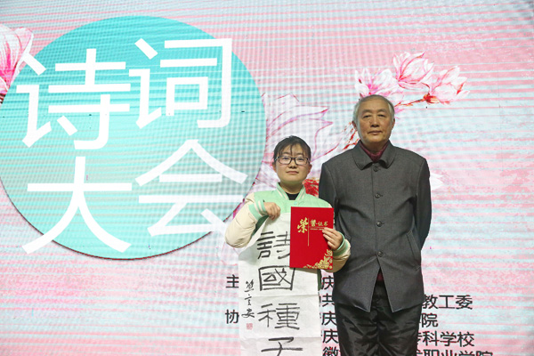 紧张激烈的“飞花令”环节中,安庆师范大学数学与应用数学专业2015(1)班的谢雪琴在121句中背出37首含“花”诗句,比汉语言文学专业2017(3)班的梅媛媛多出1句,夺得总冠军。
