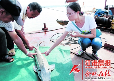 据了解,眼下长江中的杂交鲟,大多因为今年夏季洪水而逃逸,其中很大一部分来自湖北的清江水库。据杨晓鸽介绍,从六月份至今,长江安庆段的渔民已捕获50多尾杂交鲟与外来鲟,“当地渔民仅在八月份就捕获38尾杂交鲟,体长范围为25至170厘米,体重范围为0.3至25千克。”杨晓鸽告诉记者。