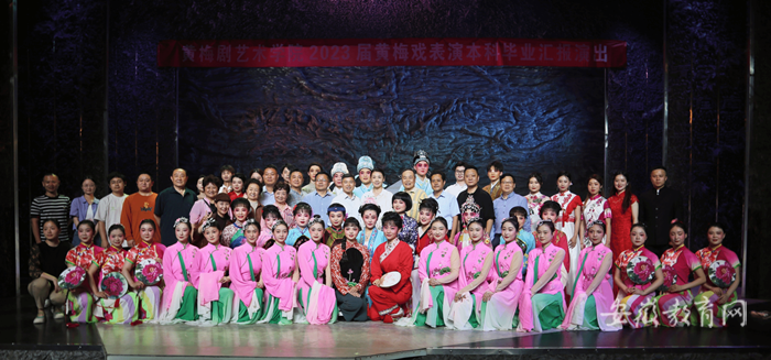 本次毕业汇报演出和师生同台黄梅戏专场演出是教学实践周重要内容,展现了安庆师范大学国家级一流本科黄梅戏表演专业的教学成果,也是庆祝安庆师范大学办学126周年系列活动的一项重要内容。( 杨米奇 特约通讯员:江伟 )